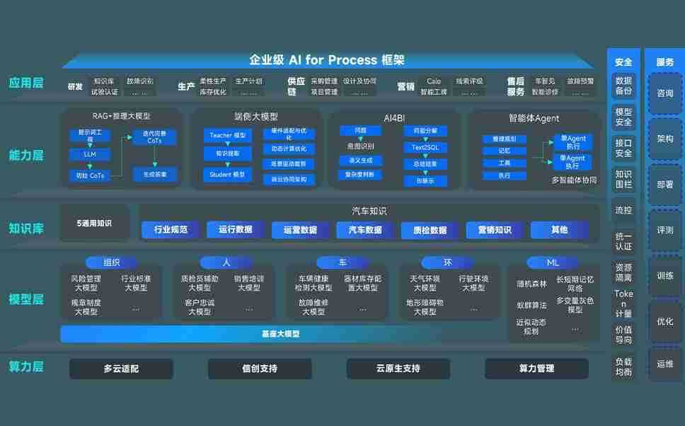 PG娱乐问学智车解决方案是一套基于AI技术的汽车行业智能化系统,,,,覆盖从底层算力到顶层AI应用的全栈方案。。方案由算力层、、模型层和应用层组成:算力层,,,,方案支持多种一体机配置,,具备云端灵活部署、、多云适配以及动态优化计算资源的能力;模型层,,,,PG娱乐问学平台版提供了企业级AI应用一站式构建与管理平台,,,支持基于后训练强化技术的汽车企业专属模型的训练、、、评测和运营;应用层,,,PG娱乐问学DeepSeek版提供包括超级员工、、、智能招采、、、、智能营销、、智能客服、、、AI for BI等一系列解决方案,,,,可助力汽车行业实现数字化转型,,,让管理更智能、、响应更敏捷。。